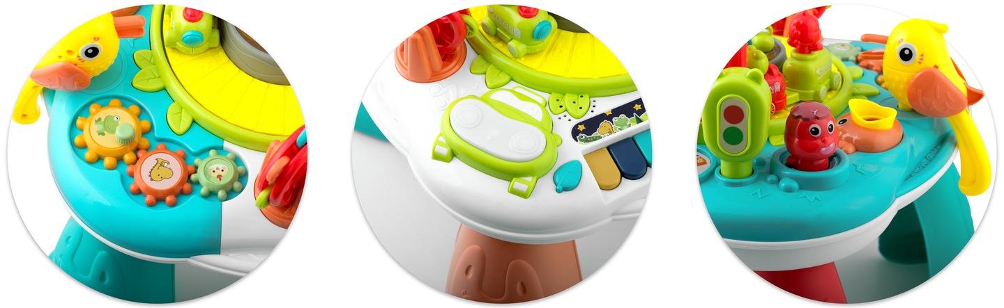 Produkt dokonale vhodný pro učení barev. Vyjímatelný panel může být použit jako vzdělávací tabule, a po přidání nohou se rychle změní na vzdělávací stolek.