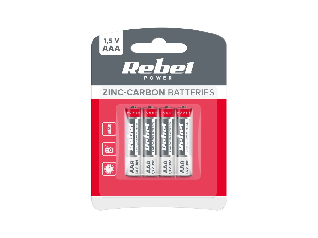 Zink-uhlíkové baterie Rebel R03 AAA 4 ks/blistr
