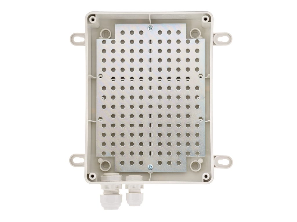 ABOX-M1 je venkovní kryt série ABOX. Kryt je vyroben z vysoce kvalitního plastu odolného vůči UV záření a má třídu těsnosti IP56. Kryt má průchodky: 1 x M16 a 1 x M20 a je vybaven montážní deskou s otvorovým systémem s rozestupem 10,8 mm.