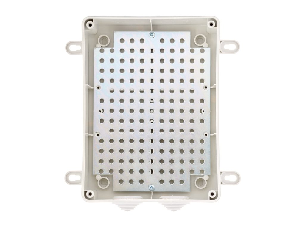 ABOX-M3 je venkovní kryt série ABOX. Kryt je vyroben z vysoce kvalitního plastu odolného proti UV záření a má stupeň ochrany IP56. Kryt má namontovány 2 gumové zátky s průměrem 29mm a je vybaven montážní deskou s otvory v rozteči 10,8mm.