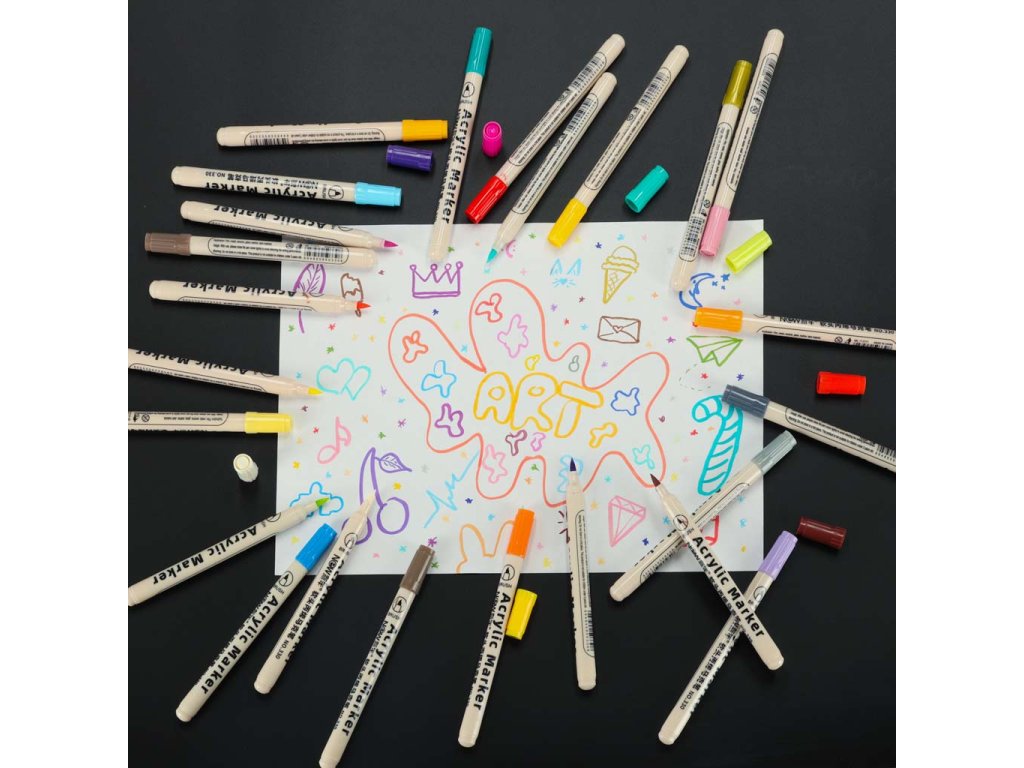 Vodotěsné akrylové fixy na malování na textil a kámen 48 ks