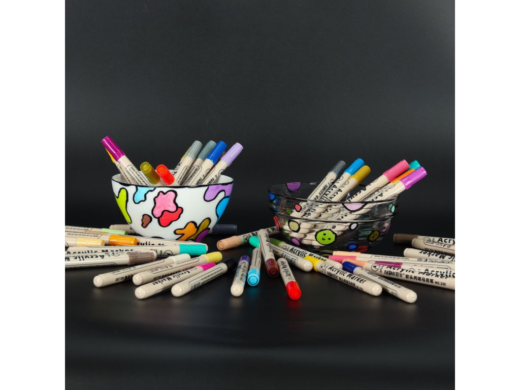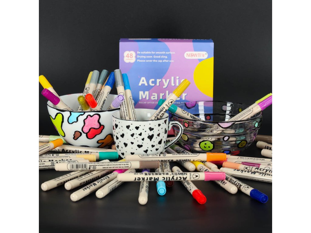 Akrylové fixy na textilie kamenné fixy DIY vodotěsné fixy 48 ks.
