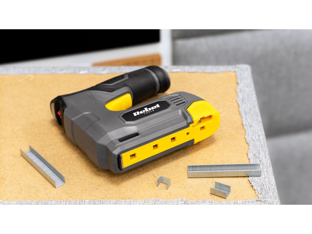 Potahování nábytku látkou není jedinou funkcí sešívačky Rebel. Toto zařízení vám umožňuje využít jak sponky ve velikosti od 6 do 12 mm, tak i 10 mm hřebíky, což v kombinaci s rychlostí střílení na úrovni 30 ks/min. znamená, že vám úspěšně pomůže při mnoha pracích ve vašem domě a kolem něj. Využijte bezdrátovou sešívačku Rebel např. pro přesné upevňování desek, fólií či papíru na různé povrchy.