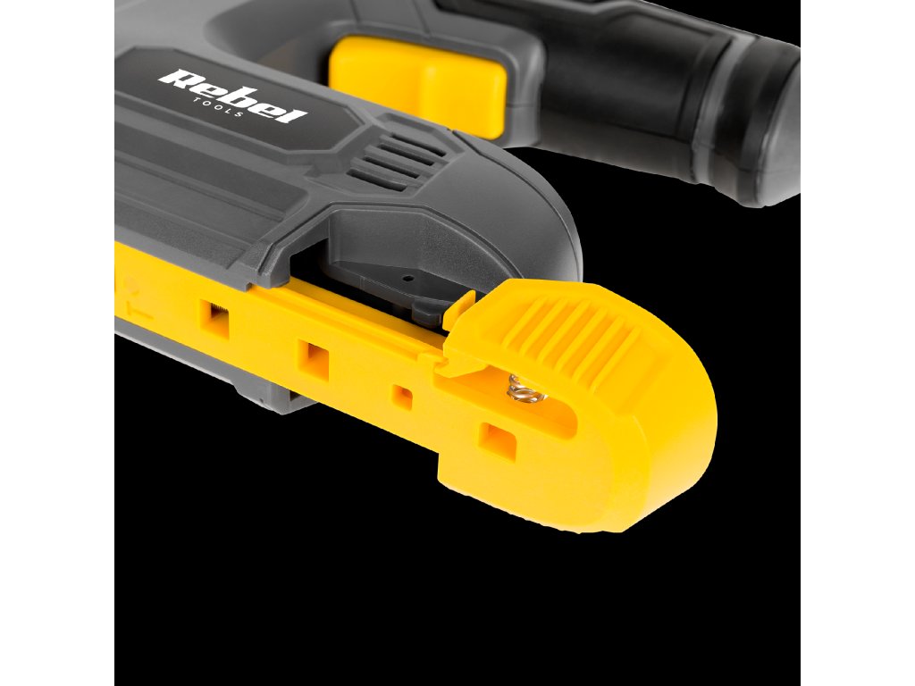 Používáním akumulátorové sešívačky Rebel máte jistotu, že vaše práce bude bezpečná. Kromě spínače je zařízení vybaveno ochranou, která nedovolí vypuštění sponky bez předchozího přitlačení sešívačky k povrchu materiálu. Pevné pouzdro s protiskluzovou rukojetí v kombinaci s nízkou hmotností a kompaktním rozměrem zajišťuje rychlé, přesné a pohodlné používání.