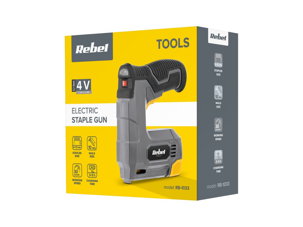 Zvažujete, která čalounická sešívačka bude pro vás nejlepší: elektrická nebo akumulátorová? Sáhněte po pohodlné obsluze a zbavte se zbytečných a zamotaných kabelů. Volnou práci s využitím sešívačky Rebel Tools zajišťuje vestavěný akumulátor 1500 mAh, který vystačí na několik hodin nepřerušené práce ve vaší domácí dílně. Součástí sady je také USB-C kabel, díky kterému zařízení plně nabijete během několika hodin.