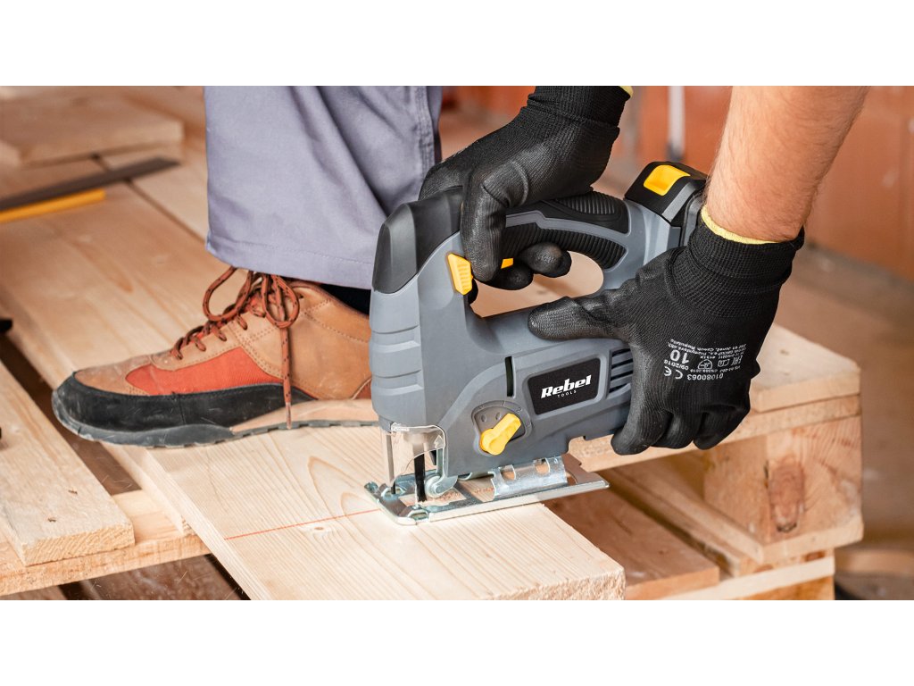 Jak se na silný dílenský nástroj sluší, přímočará pila Rebel Tools disponuje odolnou kovovou základnou což ve spojení s pevnou konstrukcí a pogumovanou rukojetí, zaručuje dlouhodobou a ergonomickou práci po mnoho let.