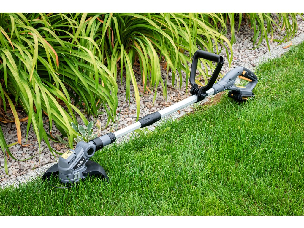 Strunová sekačka nejenže umožňuje upravit otáčení a úhel naklánění jak přednímu držadlu, tak i úhlu naklopení hlavy, ale také umožňuje nastavení délky teleskopického ramene. To zajišťuje jak efektivitu sečení, tak pohodlí během práce. Velkou výhodou zařízení je také bezdrátový provoz, díky čemuž můžete zapomenout na prodlužovače a zamotané kabely. Strunová sekačka je navíc vybavena indikátorem nabití akumulátoru, abyste mohli kontrolovat dobu své práce.