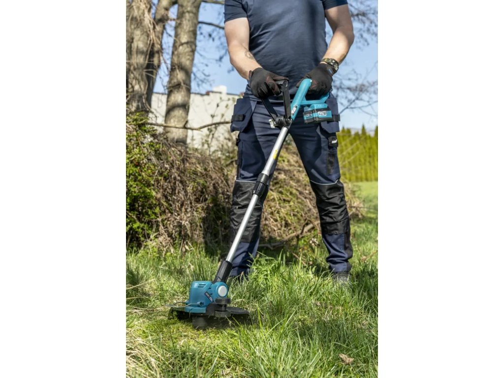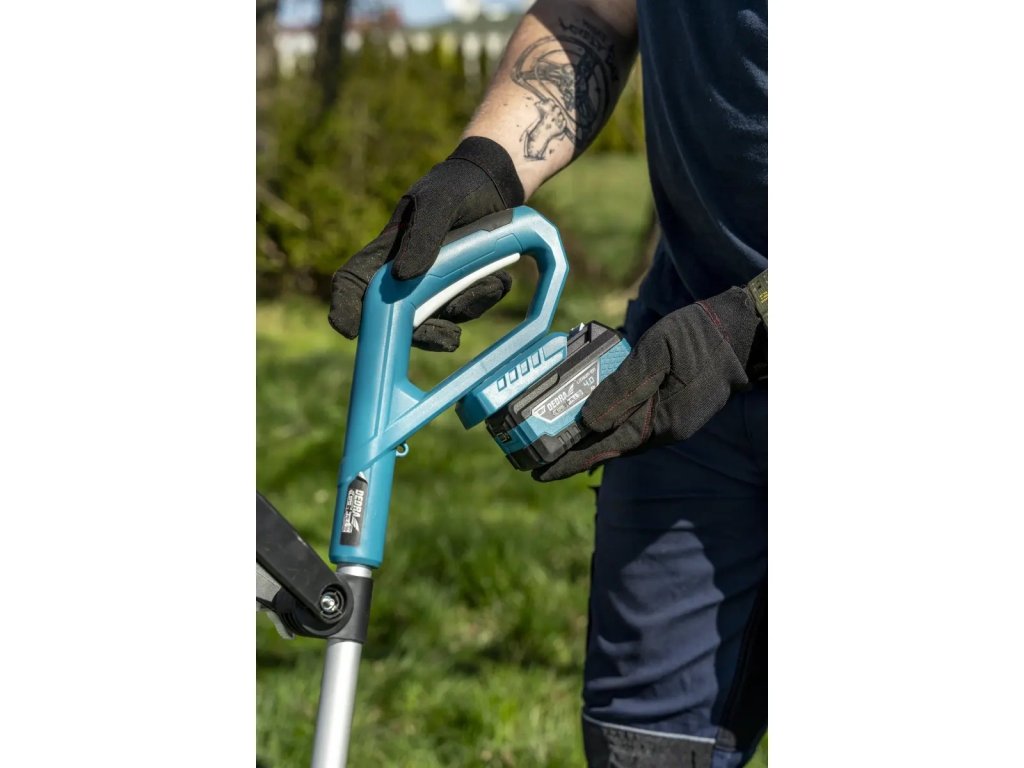 Sekačka je vybavena teleskopickou trubkou, která umožňuje rychlé nastavení délky zařízení, přizpůsobujíc jej výšce uživatele. Toto řešení výrazně zvyšuje komfort práce a odlehčuje zádům. Kromě toho nastavitelné pomocné madlo umožňuje precizní přizpůsobení pozice, což dále zlepšuje ergonomii při sečení.
