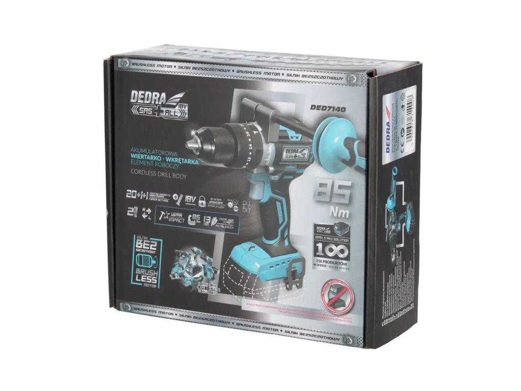 Akumulátorová vrtačka-skrutkovačka, 18V šroubovák DEDRA SAS+ALL DED7140 85Nm, 13mm s funkcí příklepu, bezkartáčová