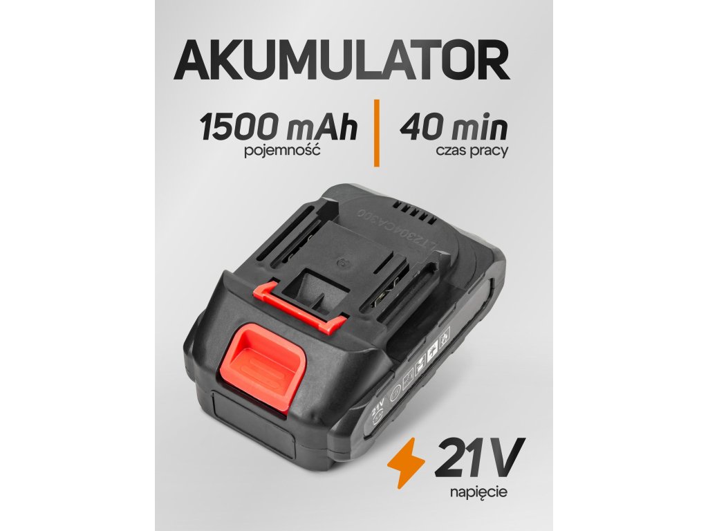 - Napětí: lithium-iontová baterie 21V