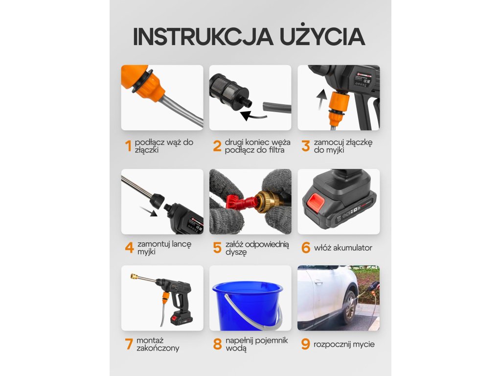 Výběrem akumulátorové vysokotlakové umývačky 21V získáváte pohodlí, mobilitu a všestrannost v jednom zařízení. Není to jen nástroj na čištění – to je univerzální pomocník, který se osvědčí v garáži, na zahradě, doma či během cestování.
