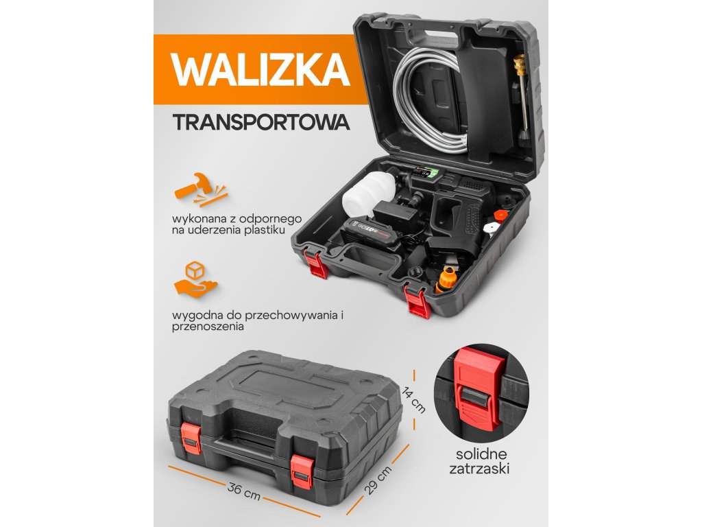Akumulátorová vysokotlaková umývačka 21V je mobilní a univerzální zařízení, které skvěle poslouží doma, na zahradě, v garáži a také na cestách. Díky napájení z baterie funguje bez kabelů a omezení a kompaktní konstrukce umožňuje snadné přenášení a používání na jakémkoli místě.