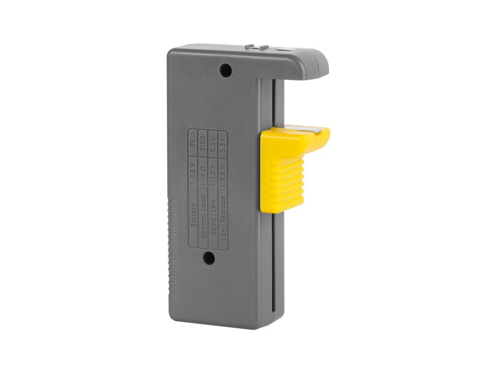 Díky páčce přizpůsobení baterií tester podporuje různé typy článků, včetně 9 V, knoflíkových, AAA, AA, C a D. Tato všestrannost umožňuje rychlé ověření mnoha druhů baterií, což je obzvláště užitečné při různorodosti zařízení.