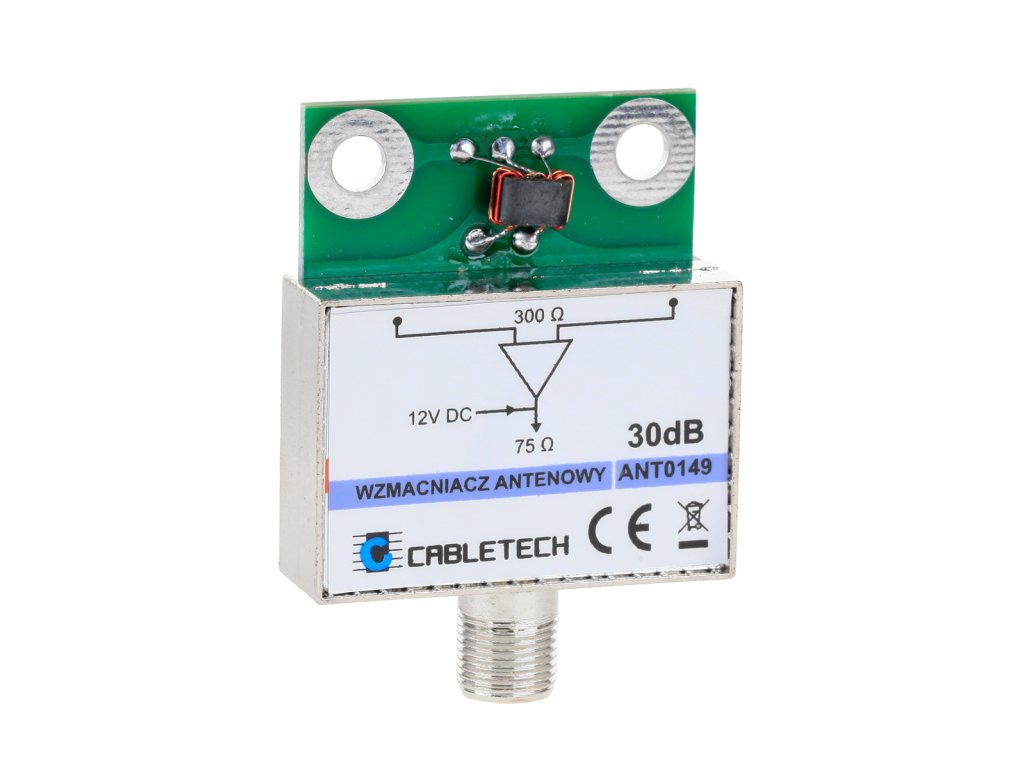 Ekranovaný anténní zesilovač 30 dB pro síťové antény se zásuvkou typu F. Má certifikát CE. Určený pro vysílače vzdálené 30-90 km od místa příjmu.Ekranovaný anténní zesilovač 30 dB pro síťové antény se zásuvkou typu F.