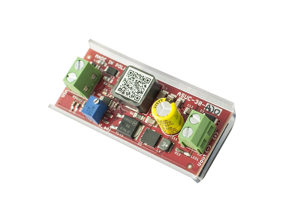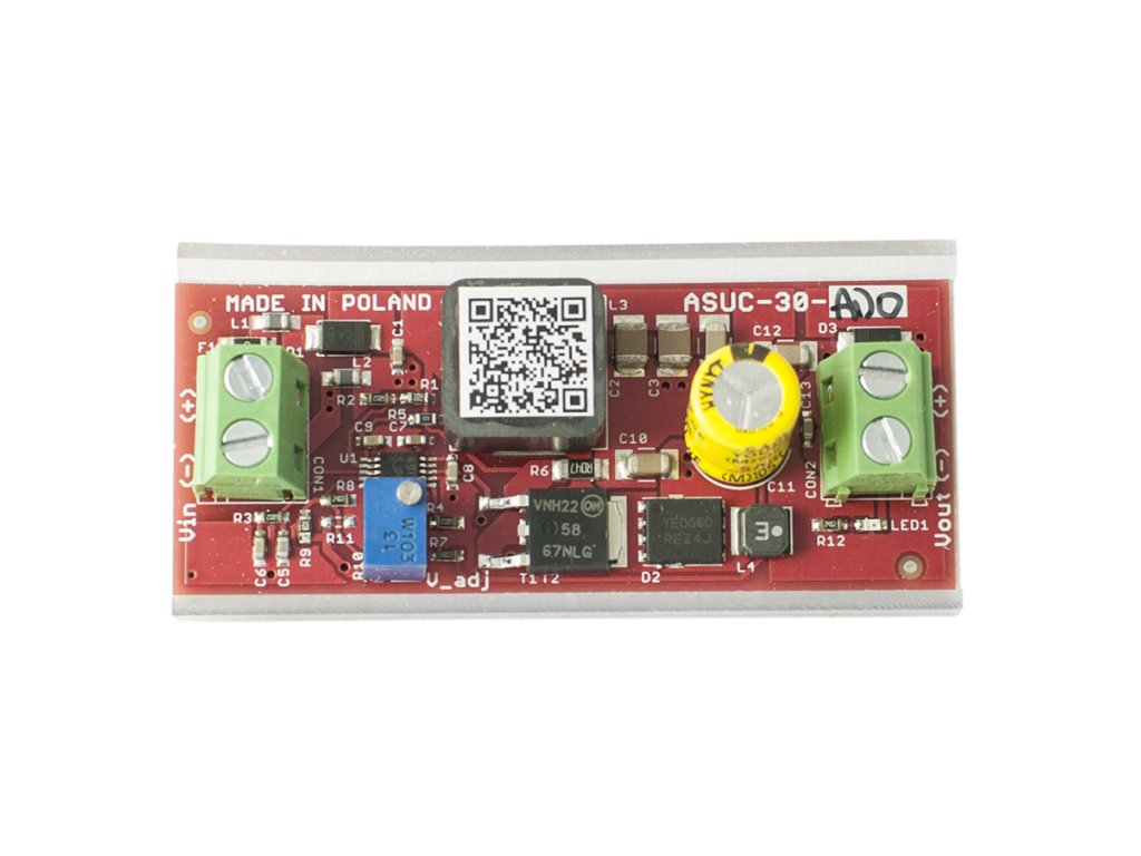 Modul ASUC30/ADJ je vysoceúčinný DC-DC měnič zvyšující napětí, přizpůsobený pro napájení vzdálených elektronických zařízení přes standardní počítačovou kroucenou dvojlinku UTP. Zařízení spolupracuje s jakýmkoli napájecím zdrojem s jmenovitým napětím 10-30VDC. Spolupráce s pohotovostním napájecím zdrojem zajišťuje nepřerušované napájení pro prvky alarmových systémů, kamer, zařízení WiFi, IP telefonů atd.