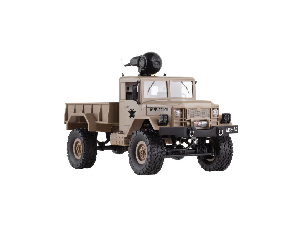 Ak chcete od svojho riadeného vozidla niečo viac - využite pokročilé funkcie Rebel Truck. Súčasťou balenia je kamera WiFi s rozlíšením 480p, ktorá je namontovaná v držiaku na zadnej strane kabíny vozidla a umožňuje vám sledovať trasu v reálnom čase a ovládať vozidlo zo smartfónu. Trasu môžete nakresliť aj na displeji a vozidlo ju vytvorí v teréne. To všetko je možné pomocou aplikácie Rebel Truck, ktorá je k dispozícii v obchode Play.