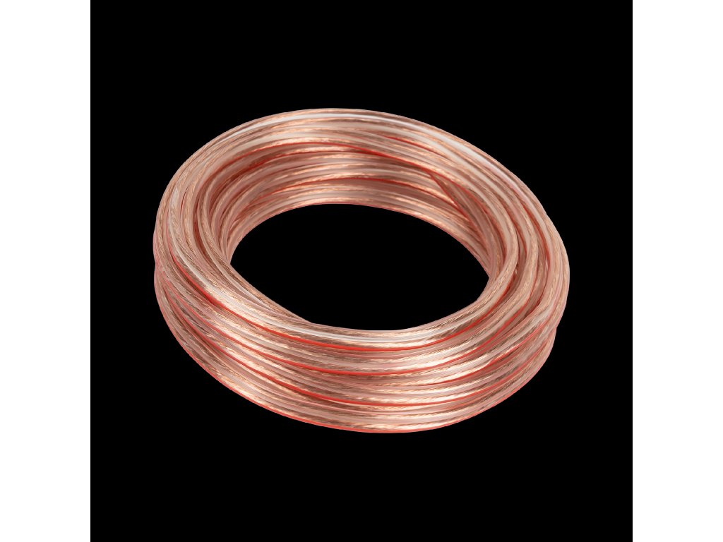 Reproduktorový kabel (12 AWG): průhledný s červenou linií 2x4,2x8,4 mm 26/0,20 CCA; 6,1 m