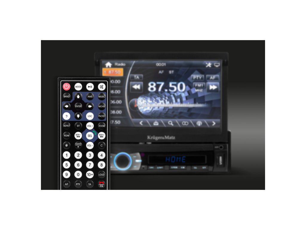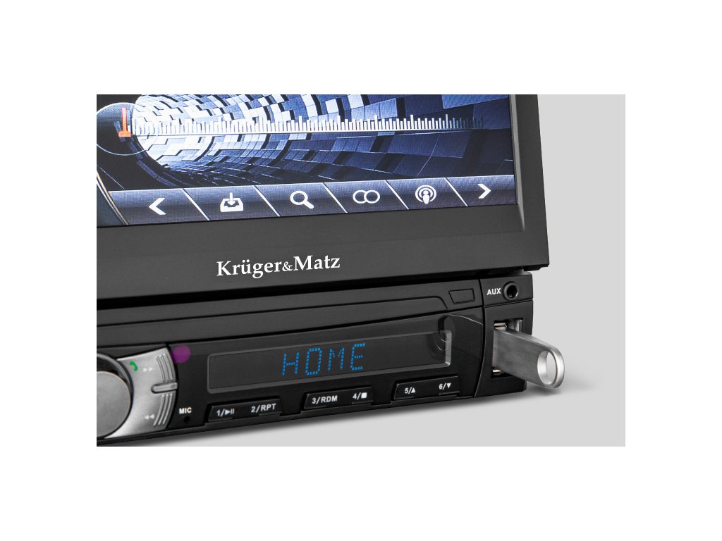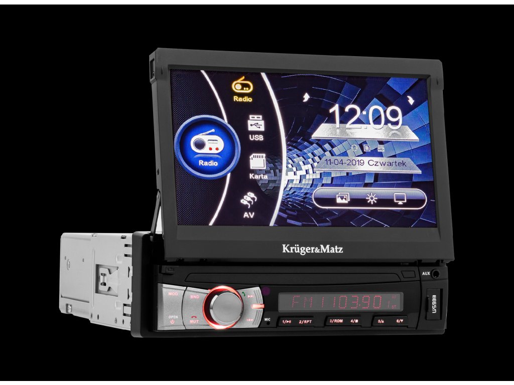 Přejete si autorádio s velkým displejem, ale ve vašem autě na něj není místo? Kruger&Matz KM 2005 vyřeší váš problém! Toto 1DIN zařízení má výsuvný, dotykový displej o úhlopříčce 7”. Přesvědčte se sami, jak dokonale zapadne do interiéru vašeho auta!
