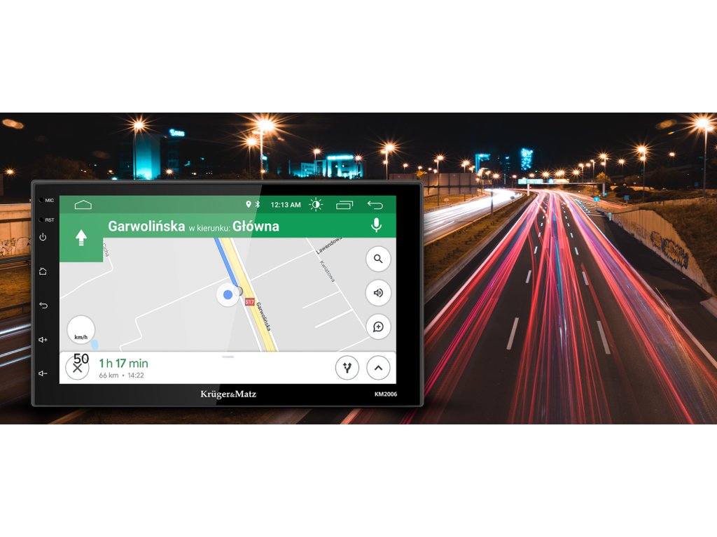 Autorádio Kruger&Matz 2006 můžete také použít jako navigaci. Navíc můžete zapomenout na nutnost stálého stahování aktualizací map, protože systém Android vám umožňuje používat Google Maps. Rádio KM 2006 vám umožňuje současně využívat navigaci Google Maps a poslouchat rádio. Nyní se nemusíte vzdát oblíbené hudby, když potřebujete pokyny na cestě.