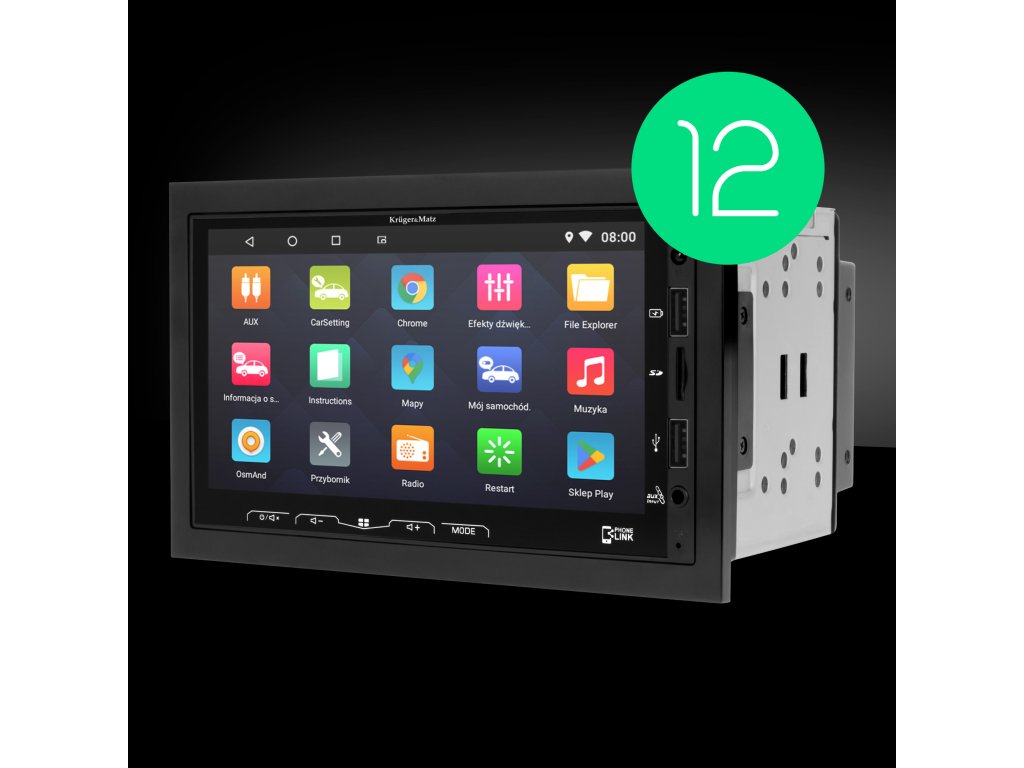 Nechte se překvapit možnostmi autorádia Kruger&Matz KM 2008! Zařízení funguje na systému Android 12. Díky tomu můžete mimo jiné využívat YouTube nebo prohlížeč Chrome. Navíc získáte přístup do obchodu Play.