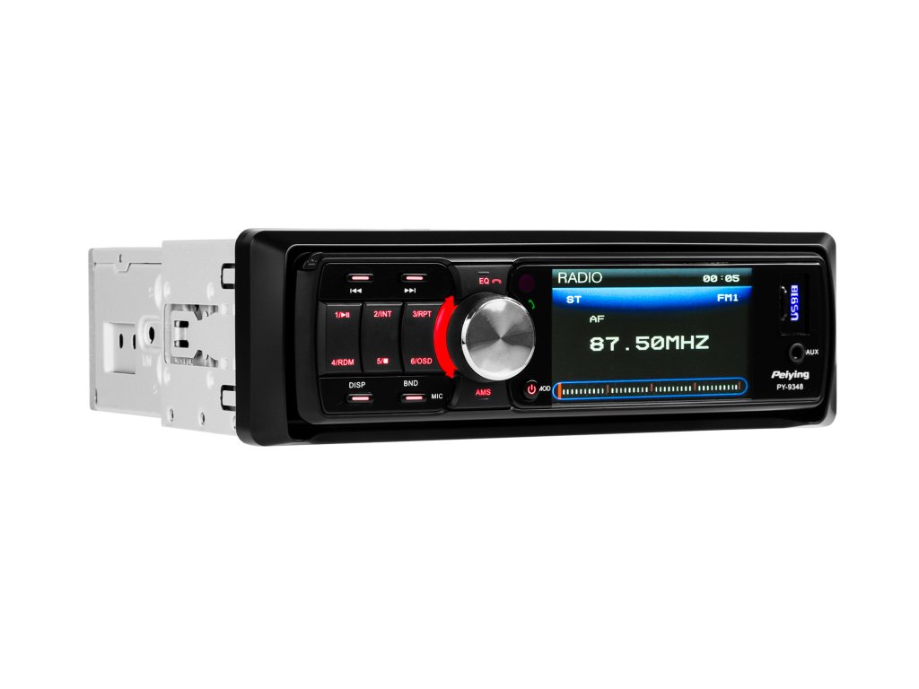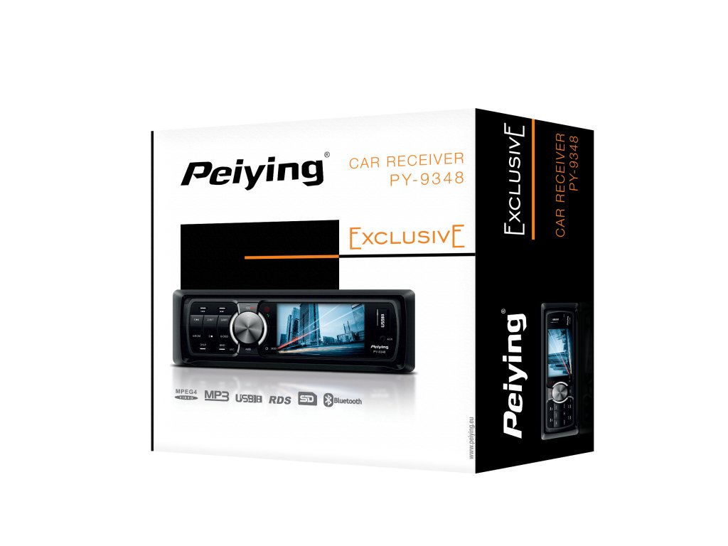 PY9348 je moderní multimediální přehrávač Peiying s výkonem 4x40W, který poskytne skvělou zábavu na cestách jak řidiči, tak i spolucestujícím. Zařízení má 3 palcový TFT displej, na kterém lze snadno přehrávat filmové soubory mp4 nebo například fotografie ve formátu jpeg. Rádio Peiying je také ideálním nástrojem pro přehrávání oblíbené hudby. Stačí externí úložiště, například pendrive, paměťová karta nebo také mp3 či telefon s uloženou hudbou, který lze připojit do na předním panelu umístěného zásuvky AUX.
