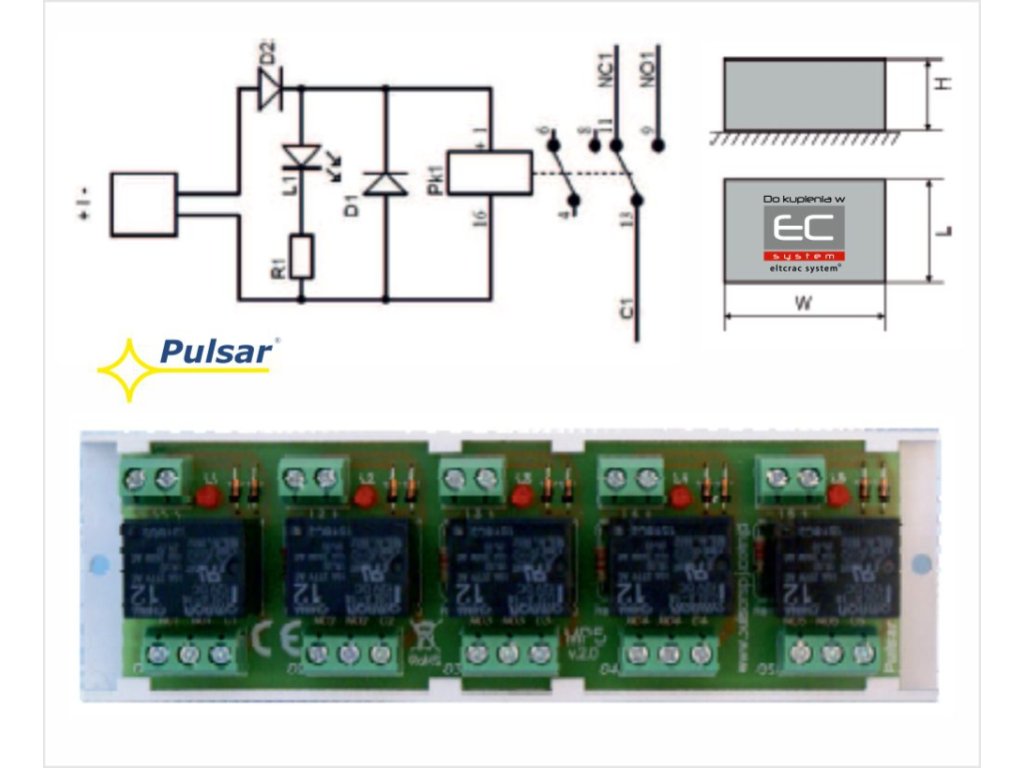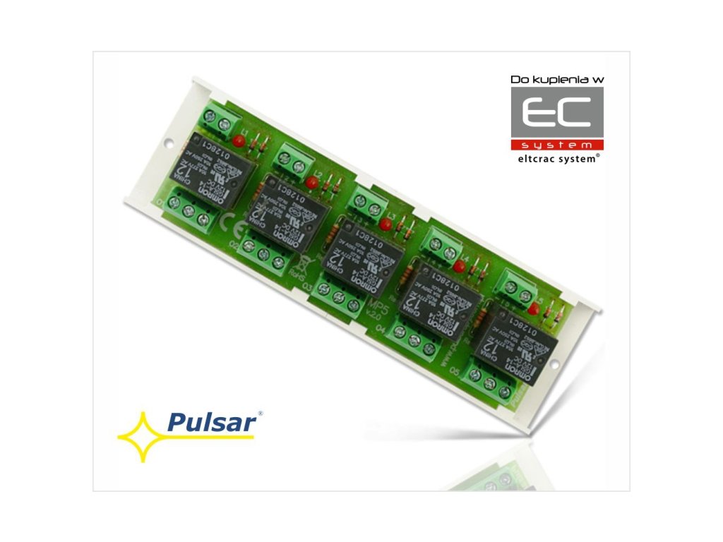 Reléový modul AWZ 520 MP 5 společnosti PULSAR je určen k použití v nízkonapěťových instalacích. Slouží k řízení, signalizaci stavů např. v poplachových systémech, systémech kontroly přístupu. Může být použit k řízení zařízení s vysokou spotřebou proudu prostřednictvím výstupů OC poplachových systémů. Kromě toho poskytuje galvanické oddělení signálů, zdrojů napájení vzhledem k výstupům modulu.