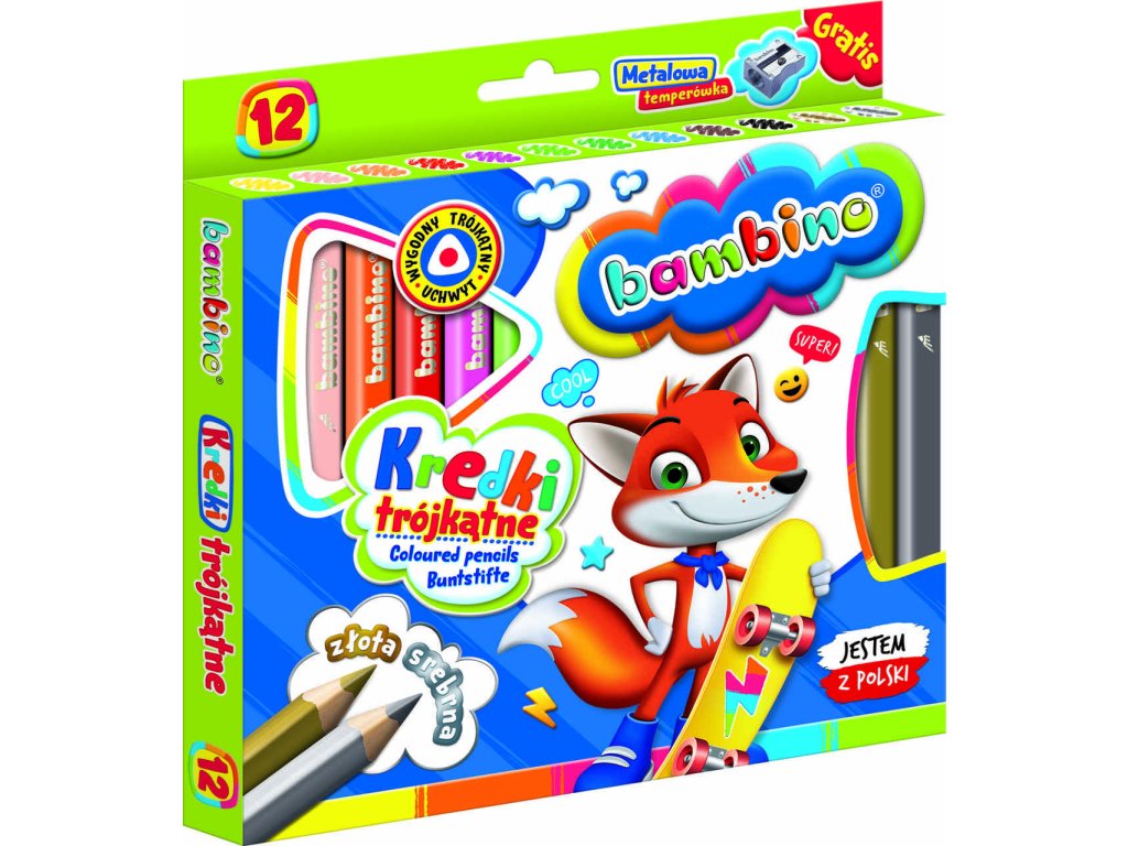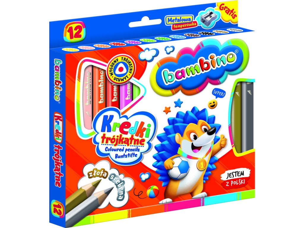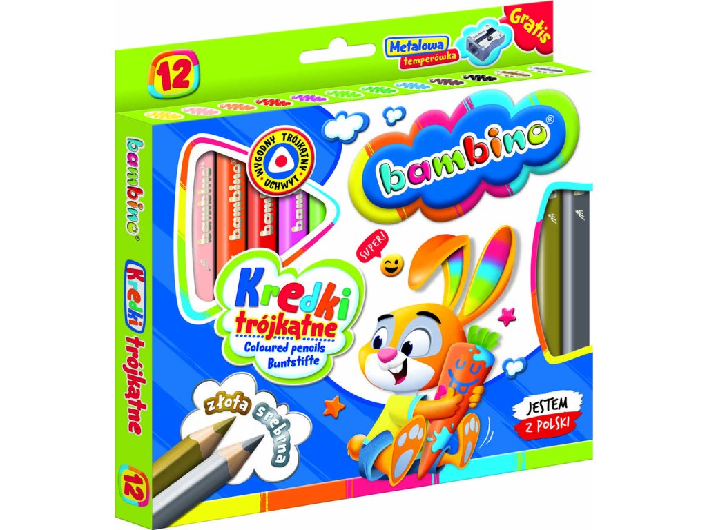 BAMBINO Trojhranné ceruzky s dreveným rámom 12 farieb + orezávátko