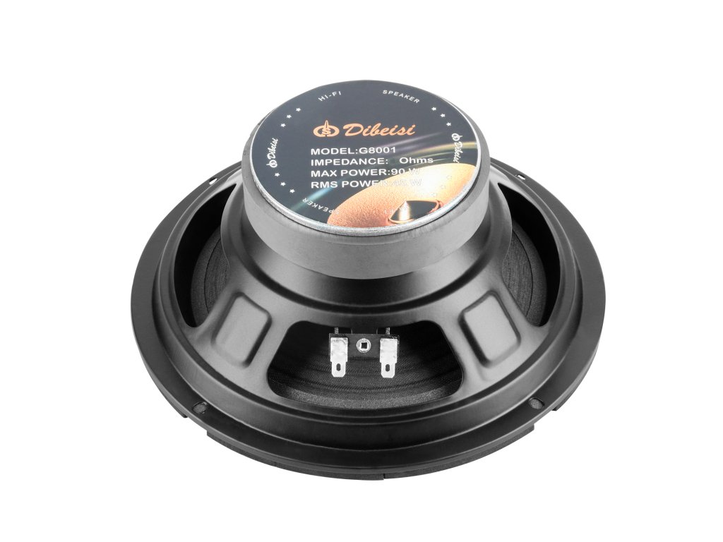 Reproduktor DBS-G8001 nabízí maximální výkon 90 W a RMS výkon 45 W, což poskytuje odpovídající výkon pro přehrávání plného a hlubokého zvuku. Impedance 8 Ohm umožňuje snadnou spolupráci s různými zesilovači, což činí tento reproduktor univerzálním prvkem v ozvučovacích systémech.