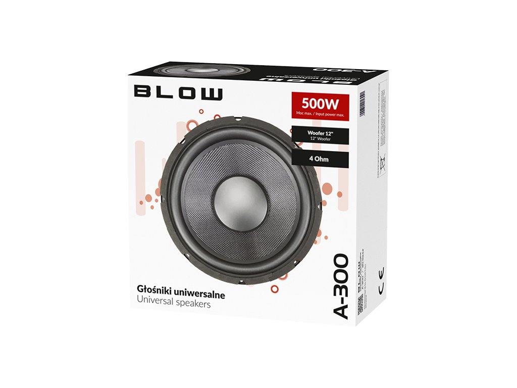 Dobré parametry komponentů zajišťují čistý a dynamický zvuk a široký rozsah frekvencí nabízející úžasné hudební zážitky. Univerzální automobilový reproduktor značky Blow s maximálním výkonem 500W. Jednosměrný systém reproduktoru má nízkotonové uspořádání. Díky tomu se ve srovnání se širokopásmovými modely výrazně liší mnohem lepší kvalitou zvuku.