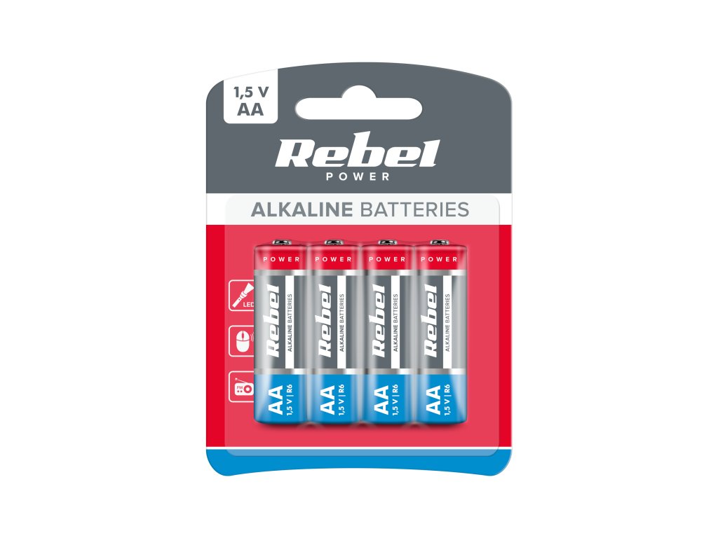 Alkalické baterie Rebel LR6 AA 4 ks/blistr