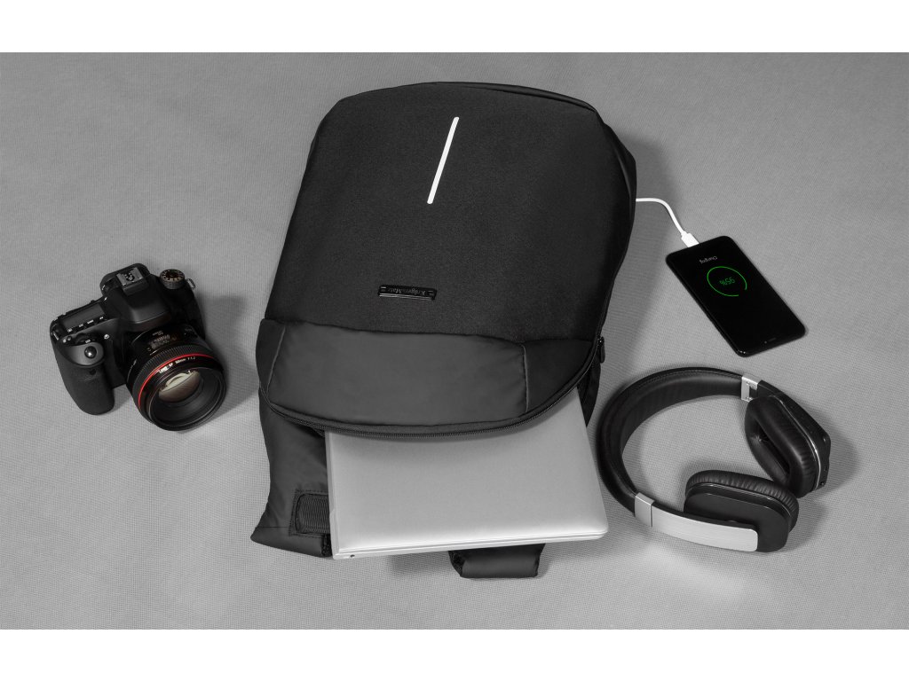 To, co hned zaujme, je jednoduchý, a přitom velmi moderní design. Batoh je vyroben z vysoce kvalitního materiálu, takže máte jistotu, že vám poslouží velmi dlouho. Zajímavým řešením je také vestavěný USB kabel pro připojení powerbanky a externí USB výstup, pomocí kterého můžete pohodlně nabít telefon.