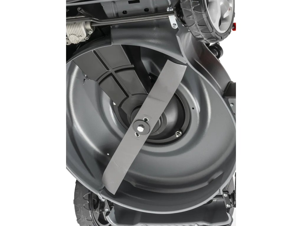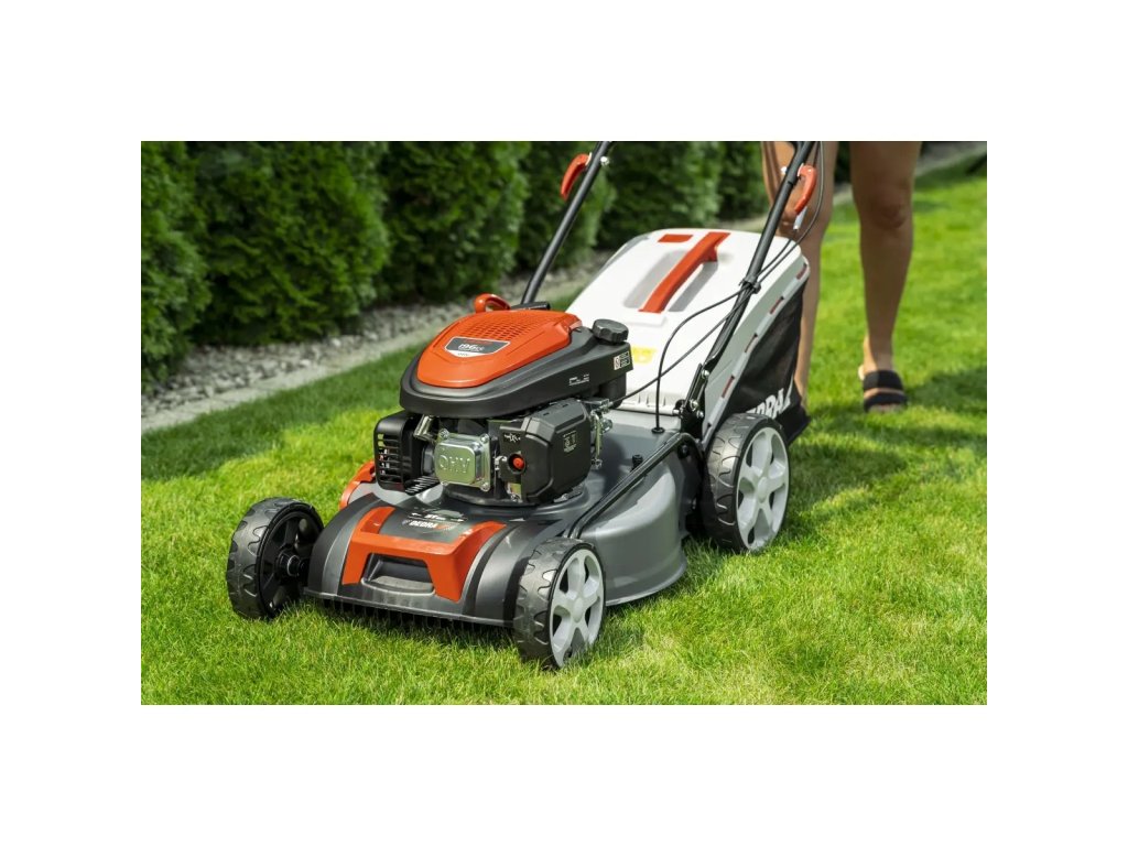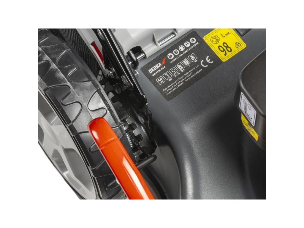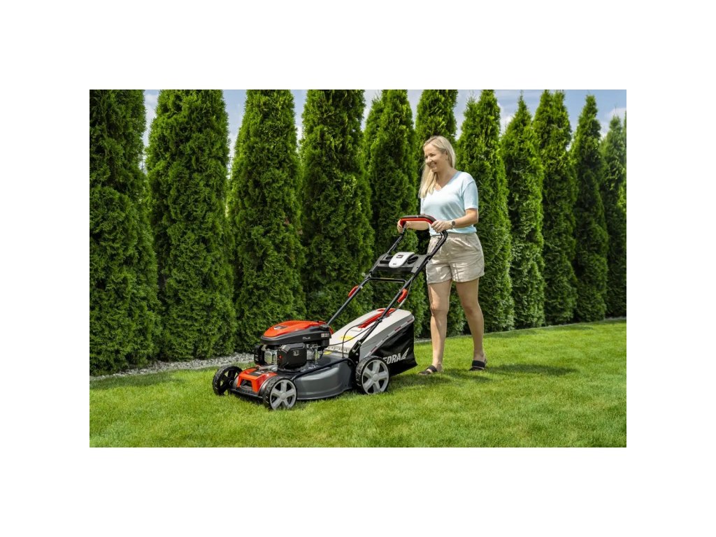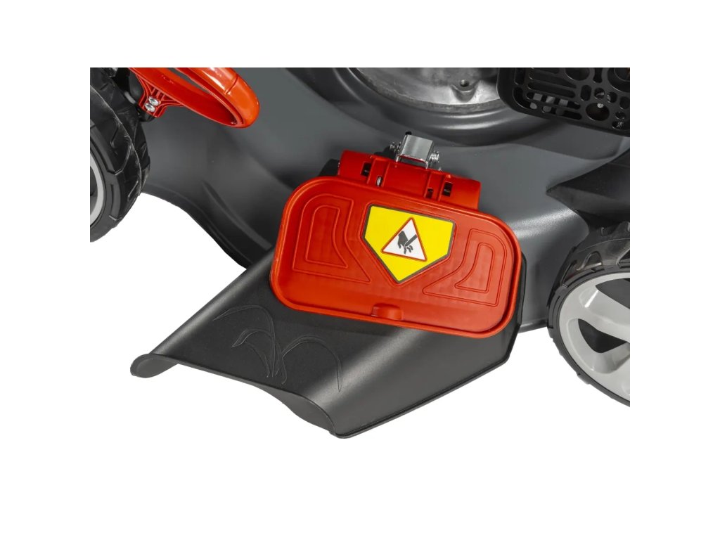 Pohon usnadňuje práci na větších pozemcích a zajišťuje pohodlí při používání. Centrální nastavení výšky sekání (od 25 do 75 mm) umožňuje rychlé přizpůsobení nastavení, poskytující plnou kontrolu nad výsledkem sekání. Sekačka má také funkci mulčování, která efektivně drtí trávu, zlepšuje strukturu půdy a podporuje hnojení. Dále volba mezi zadním a bočním výhozem umožňuje flexibilní přizpůsobení různým podmínkám sečení.