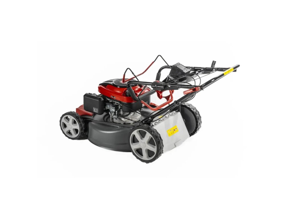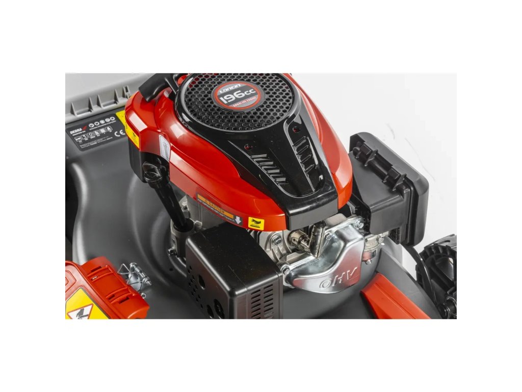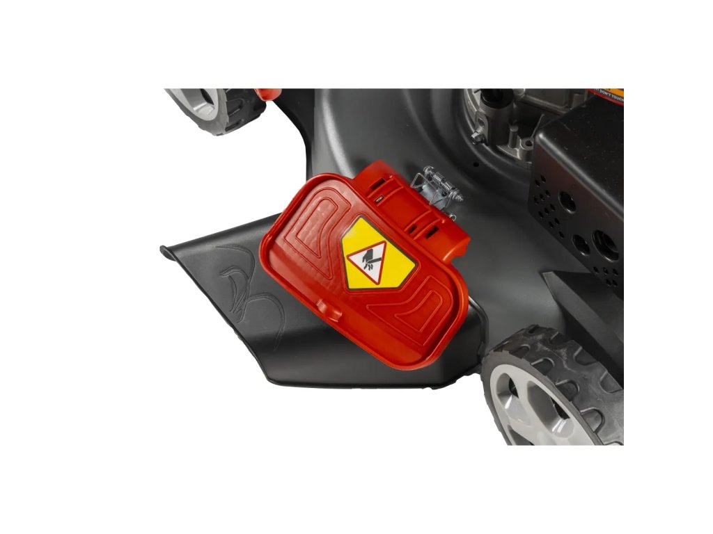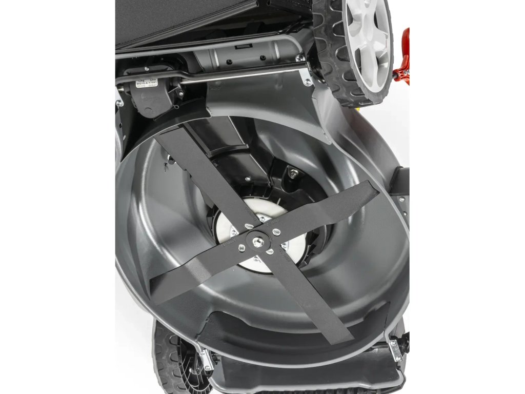 Sekačka je vybavena funkcí mulčování pro snížení objemu trávy. Skládací rukojeť a síťový zásobník s plastovým horním krytem usnadňují skladování a přepravu. Tělo sekačky je vyrobeno z hrubého plechu, což výrazně zvyšujeodolnost stroje, zejména při použití na neupraveném terénu. Pohodlná rukojeť ve tvaru písku zvyšuje komfort při dlouhodobém používání. Volant má praktickou odkládací přihrádku na drobnosti (např. telefony) a držák na nápoje.