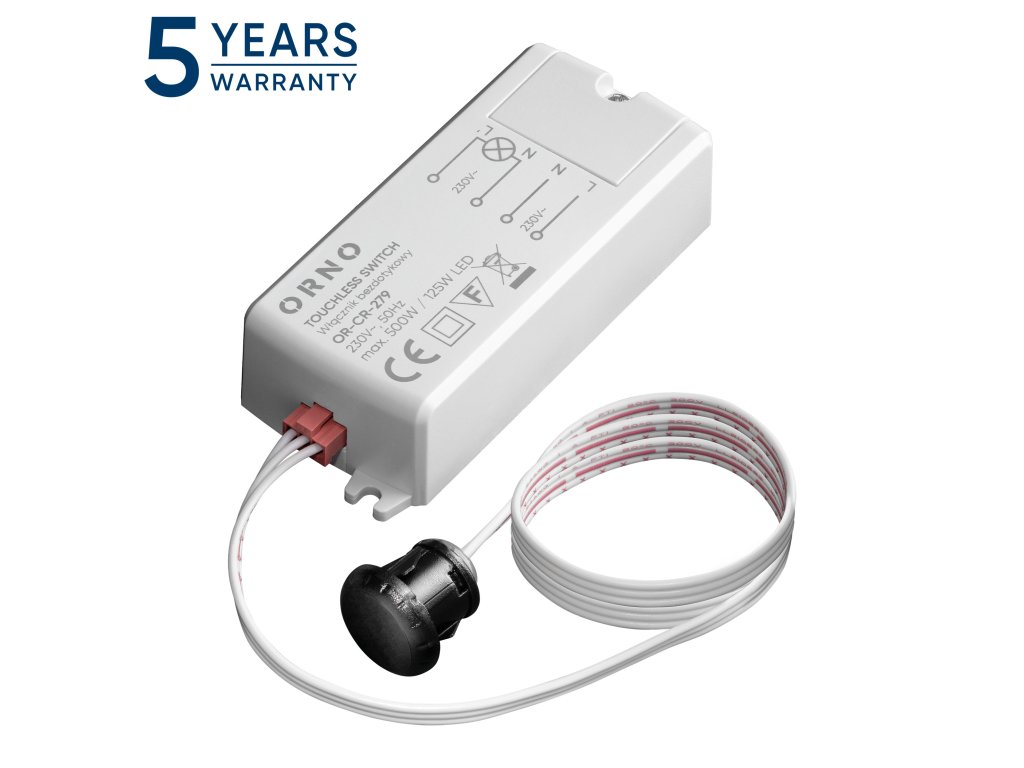 Bezdotykový spínač je moderní a pohodlné řešení, které usnadňuje bezdotykové ovládání osvětlení. Díky funkci přiblížení reaguje na pohyb v maximálním dosahu až 5 cm přímo před sebou.Zařízení se vyznačuje vysokou přesností a detekuje pohyb rychlostí 0,6 až 1,5 m/s. Vybaveno reléovým výstupem podporuje jmenovité napětí 230V AC. Maximální spínací výkon je 500W, což umožňuje připojení různých světelných zdrojů nebo LED s celkovým výkonem 125W.