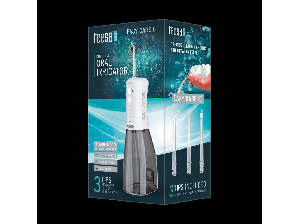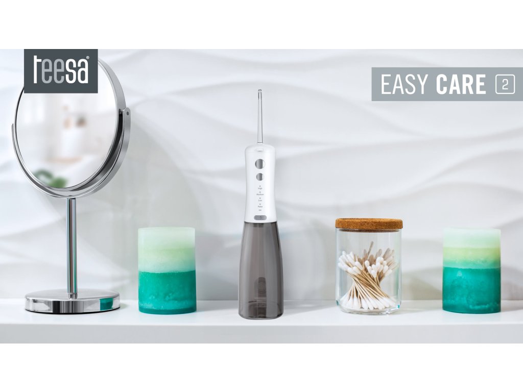 Bezdrátový zubní irigátor Teesa Easy Care Ani ta nejdokonalejší zubní kartáček neodstraní všechny zbytky jídla, bakterie a zubní kámen. Pokud chcete účinněji dbát o hygienu ústní dutiny, vyzkoušejte irigátor Teesa Easy Care 2. Jeho každodenní používání sníží riziko vzniku zubního kazu a jiných chorob zubů a dásní. Postarejte se o zdravý a krásný úsměv každý den, omezte návštěvy zubaře. Bezdrátový irigátor Plně nabitý irigátor Teesa Easy Care 2 zaručuje nepřetržitý provoz přibližně 45 minut. To se promítá do mnoha dní používání bez potřeby častého nabíjení. Je to tedy ideální zařízení pro každodenní použití doma i na cestách.