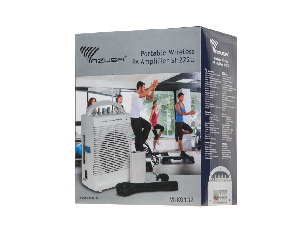 SH222U obsahuje vše, co potřebujete k okamžitému použití: hlavní jednotku, ruční mikrofon, klipový mikrofon, náhlavní mikrofon, tašku, automobilový napáječ a návod k použití. Kromě toho je sada vybavena vstupem jack 6,5 mm pro dynamický drátový mikrofon a vstupy a výstupy AUX, což umožňuje širokou škálu použití.