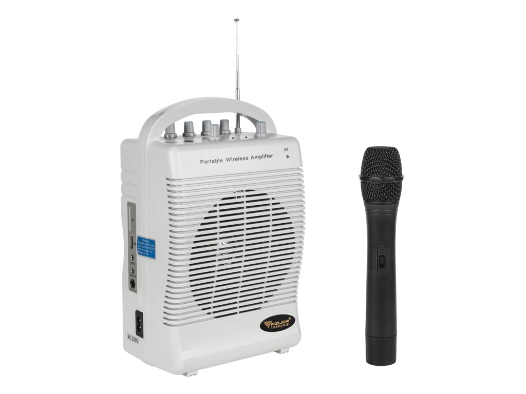 Navzdory malým rozměrům (180 x 300 x 110 mm), sada nabízí maximální výkon 50 W, což v kombinaci s reproduktorem o průměru 16 cm a výkonu 10 W/4 Ohm zajišťuje čistý a silný zvuk. Dosah provozu až 35 metrů a podpora frekvencí VHF (174 ~ 216 MHz) zaručují spolehlivost během používání.