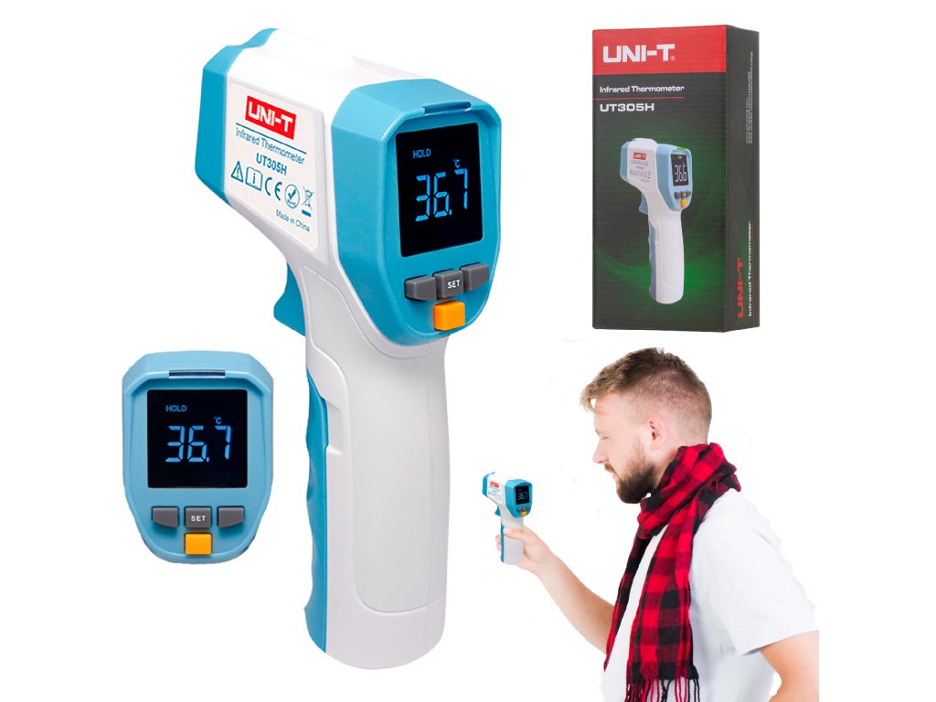 Měřič teploty UNI-T UT305H, využívající nejnovější technologie umožňuje měření teploty v rozsahu 32°C-42,9°. Vysoká přesnost zařízení umožňuje rychlou a přesnou kontrolu teploty těla, stejně jako dalších prvků okolí, např. předmětů, jídla, tekutin atd.