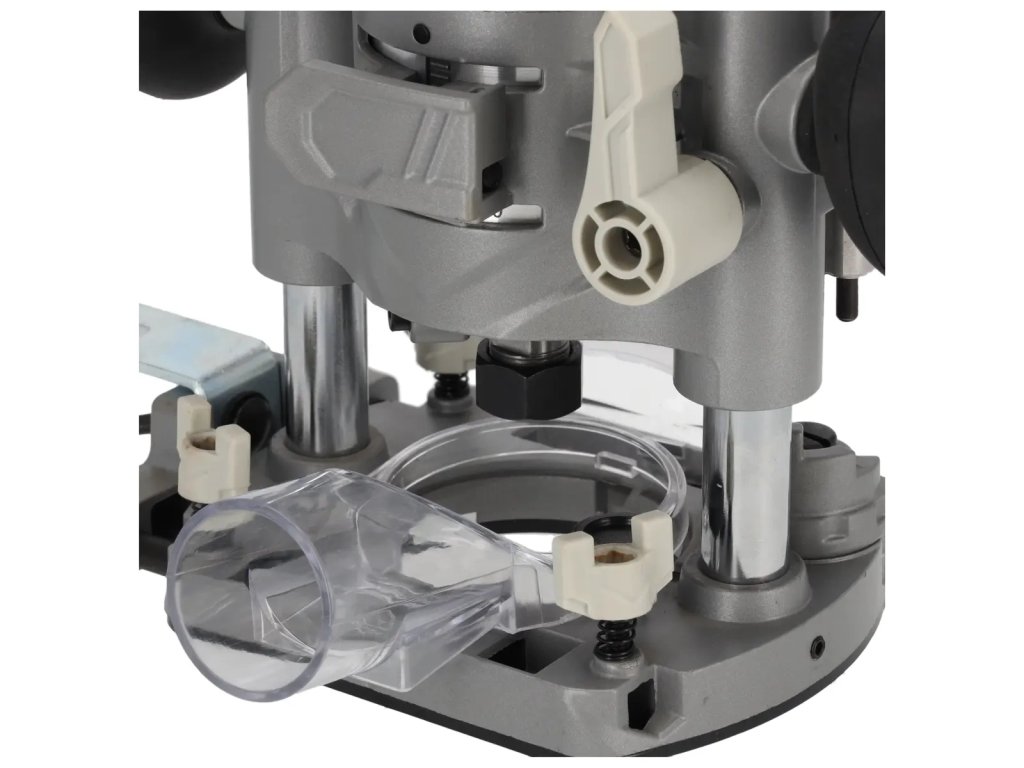 Regulace hloubky frézování probíhá dvoustupňově, což umožňuje přesné nastavení na požadovanou hloubku zpracování. Maximální hloubka frézování činí 33 mm. Dále je frézka vybavena dvěma upínacími pouzdry o průměrech 6 mm a 8 mm, což umožňuje flexibilní používání různých fréz.
