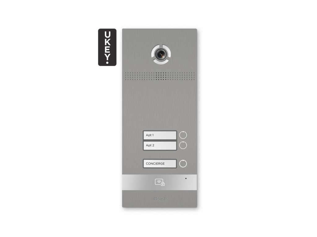 Venkovní panel BI-02FB Silver značky BasIP je určen pro instalaci videovrátnika v IP technologii. Panel má 2 účastnická tlačítka a 1 tlačítko typu "Concierge". BI-02FB se vyznačuje moderním designem a širokou funkčností; je vybaven bezkontaktním čtečkou ve standardech Mifare a Unique a je plně integrován se systémem otevírání UKEY (QR kód, NFC a Bluetooth BLE). Zařízení má možnost plné integrace s jakýmkoliv bezpečnostním systémem a automatizací prostřednictvím otevřeného rozhraní API.