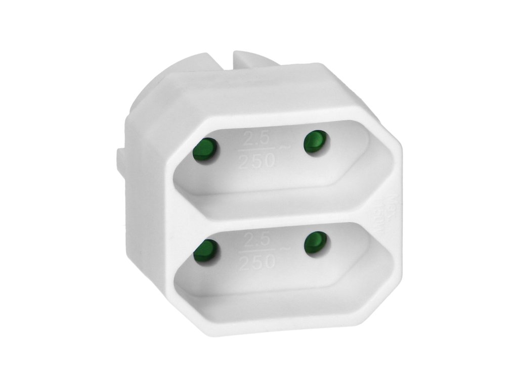 Bílý dvojitý zásuvkový rozdělovač euro 2x2P