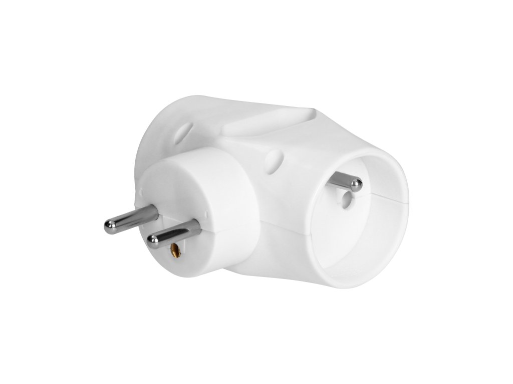 Bílý elektrický trojitý rozdělovač 2x2P+E