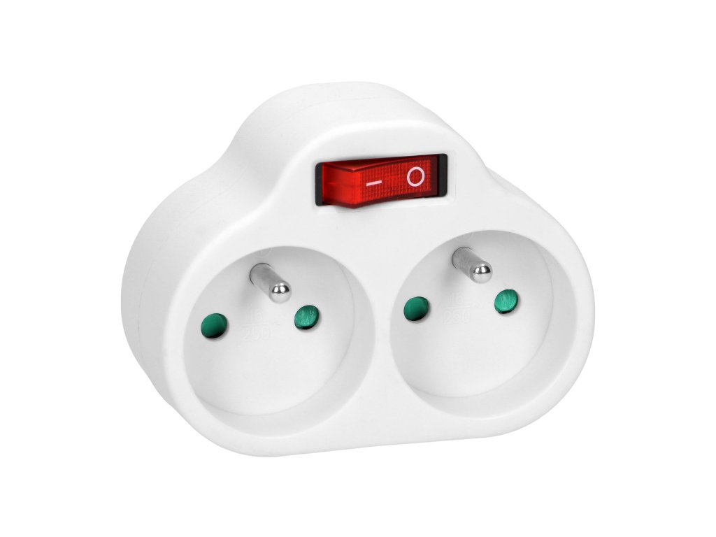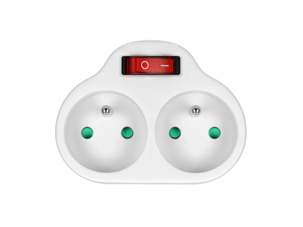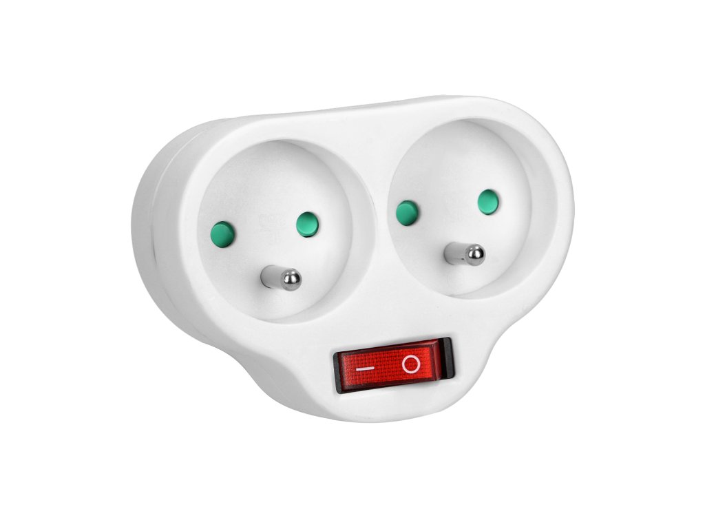 Bílý napájecí rozbočovač se dvěma zásuvkami