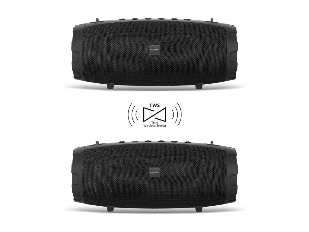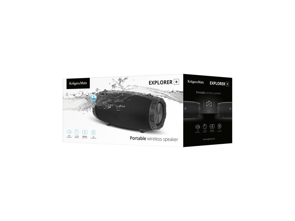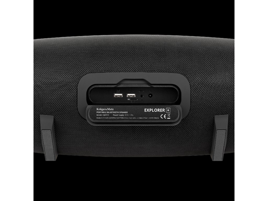 Zvažujete koupi, ale nevíte, jaký Bluetooth reproduktor zvolit? Kruger&Matz Explorer+ je velký Bluetooth reproduktor, který vám umožní rozproudit každou párty. Je vybaven třemi měniči – dvěma vysokotónovými a jedním basovým, což mu umožňuje přehrávat hudbu v pásmu 60 Hz – 18 kHz. Zařízení je vybaveno technologií Bluetooth 5.0, která zaručuje nejen stabilní připojení, ale také nízkou spotřebu energie. Velkou výhodou je také ekvalizér, který zajistí, že hudba bude znít skvěle bez ohledu na akustiku místnosti. Chcete zdvojnásobit výkon zvuku? Funkce True Wireless Stereo vám umožní spárovat dva bezdrátové reproduktory Kruger&Matz Explorer+.
