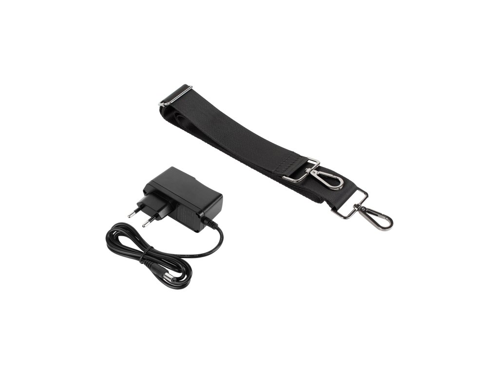 V balení: síťová nabíječka, kabel jack 3,5 mm, popruh, návod k obsluze