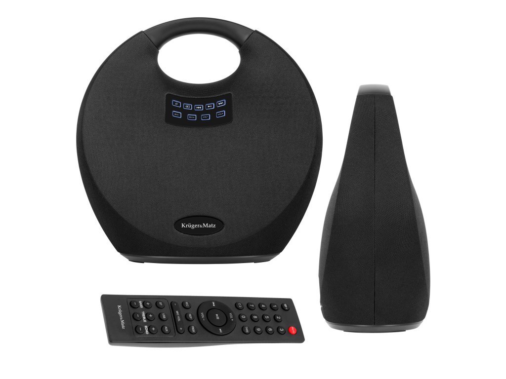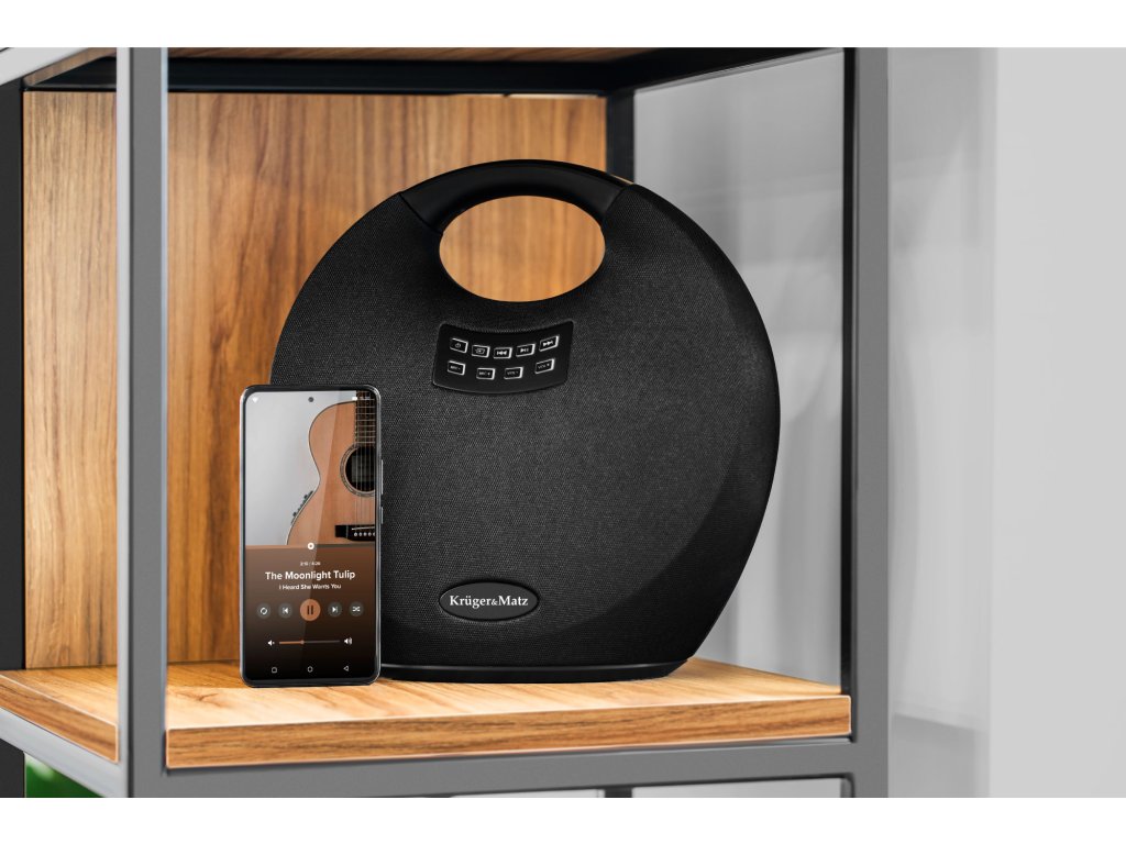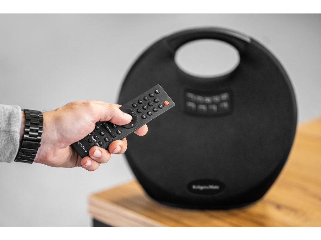 Mnohem širší možnosti ovládání Bluetooth reproduktoru Kruger&Matz Spiral zajišťuje přiložené dálkové ovládání. Díky němu můžete pohodlně regulovat zvuk, nahrávat a přehrávat zvuky nebo vybírat zdroje zvuku.