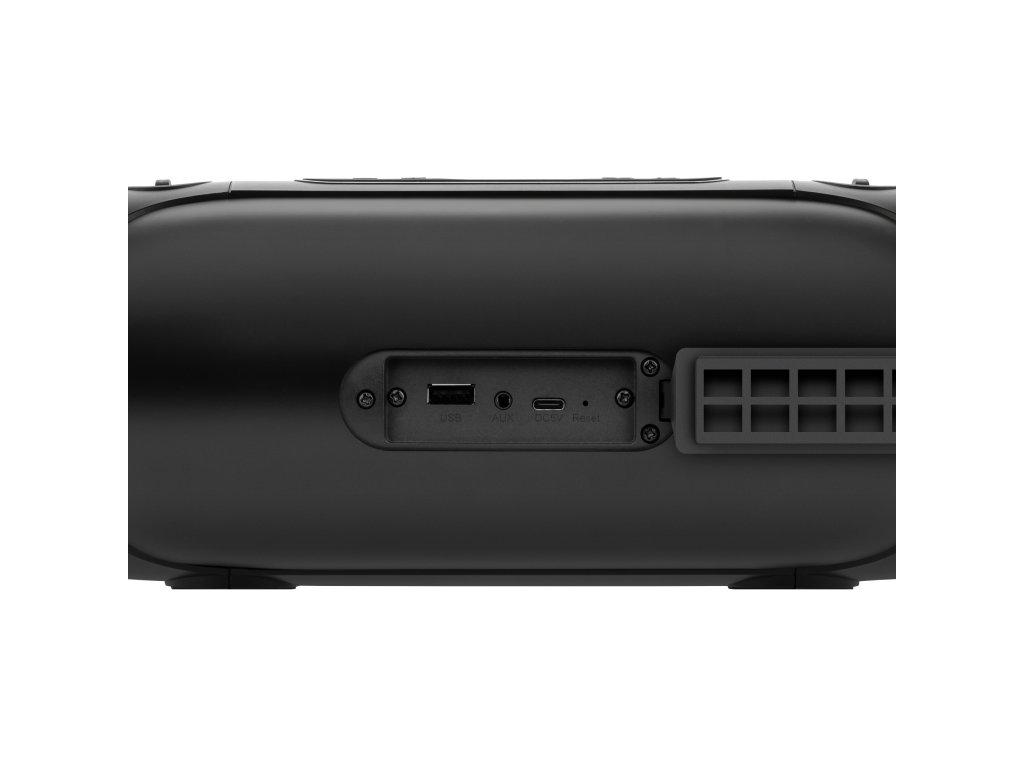 Pohodlné ovládání Bluetooth reproduktoru Street zajišťuje ovládací panel umístěný na skříni s tlačítky pro změnu zdroje přehrávání, úrovně hlasitosti nebo skladby, funkce TWS a změny podsvícení. Navíc, pokud máte svou oblíbenou hudbu na flash disku nebo přenosném přehrávači, můžete ji přehrávat pomocí USB portu nebo AUX vstupu.