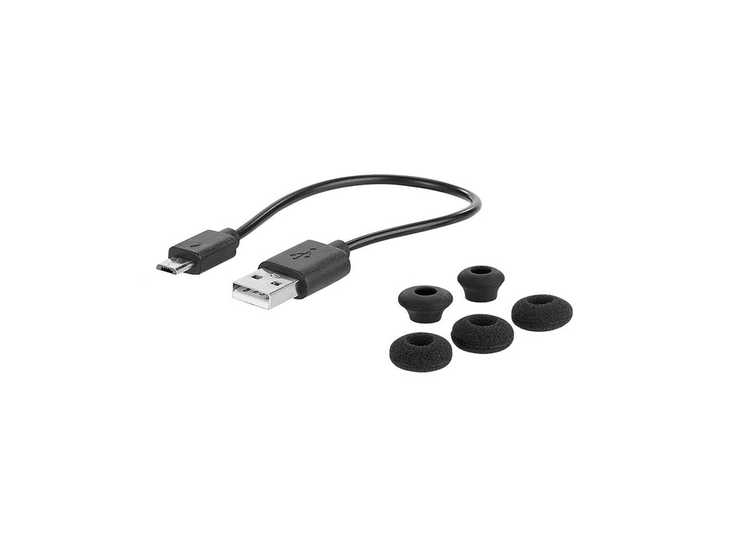Balení obsahuje: kabel micro USB, špunty (x3), pěnové špunty (x3), uživatelská příručka