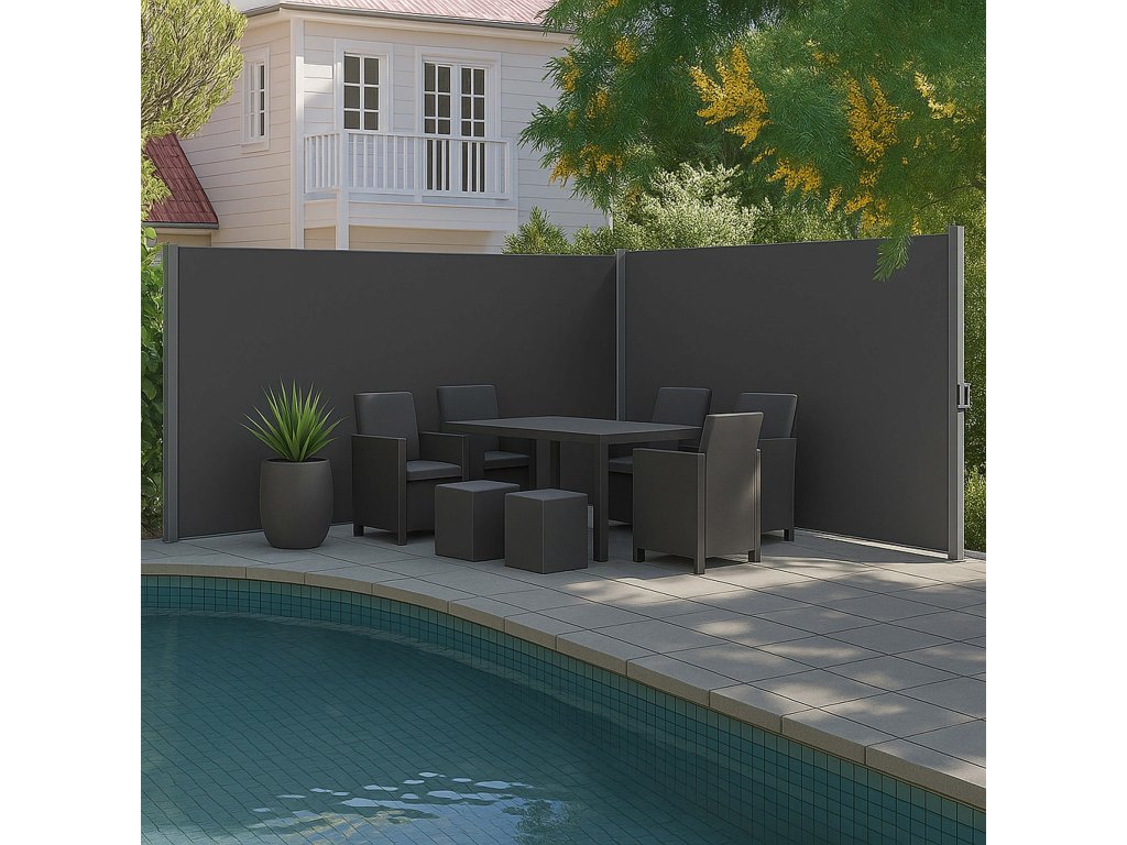 Boční markýza 350 X 180 CM černě šedá AW0004