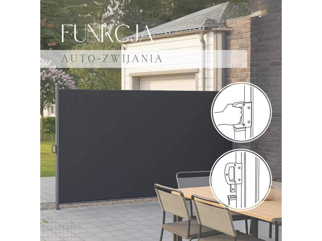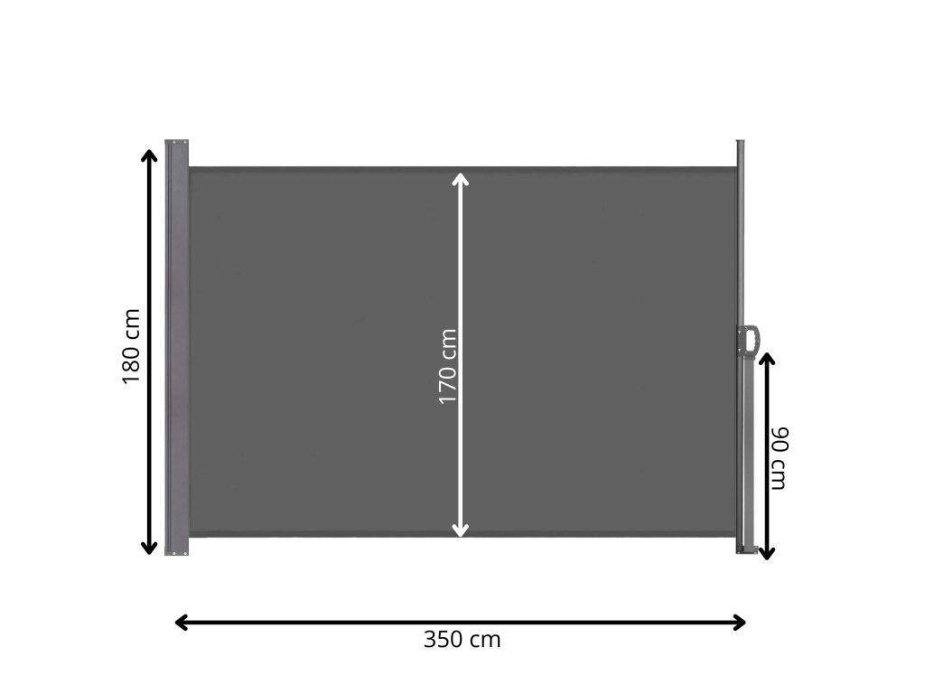 Boční markýza 350 x 180 CM černo šedá AW0004